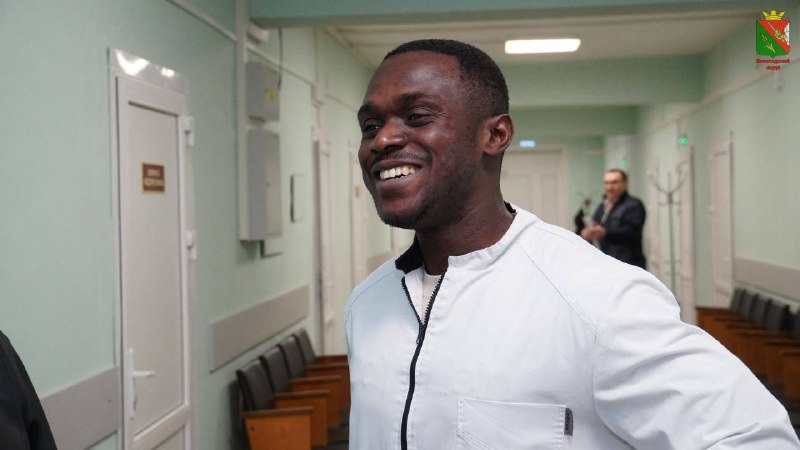 Это? А это ничего особенного-кардиолог в больнице поселка Кубенское. Баудри Мазела из Конго. Бабки конечно поначалу крестились, а щас привыкли.
