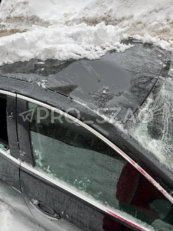 ❗️💛💛💛💛 Вчера глыба снега со льдом упала с крыши дома 29 на улице Барышиха и повредила автомобиль. Машина припаркована во дворе жилого дома, рядом с которым находится начальная школа. По характеру