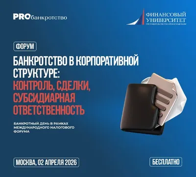 Банкротство в корпоративной структуре: контроль, сделки, субсидиарная ответственность Банкротный день в рамках Международного налогового форума 🗓️ 02 апреля 2026 года 🕓 09:30 — 15:00 📍 Финансовый