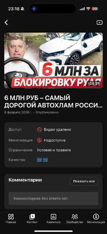 ⛔ Ролик про блокировку руля у АвтоВАЗа заблокирован на YouTube за якобы какие-то нарушения Увы, YouTube устроен очень непросто, и потребуется время, чтобы для начала выяснить, кто и на каком основани