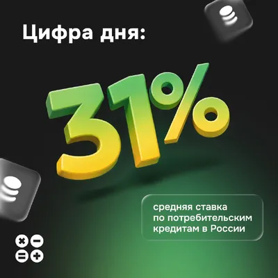 Цифра дня: 31%. Такова средняя ставка по потребительским кредитам в России (по информации «Известий»). По данным мониторинга крупнейших российских банков, средняя полная стоимость потребительских кре