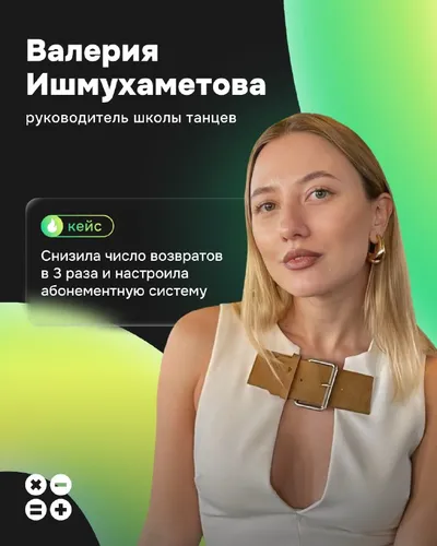 😎 Как Prodamus.Pay помогает продавать продукты с высоким чеком Валерия Ишмухаметова — руководитель школы танцев и эксперт по продвижению. Она не только обучает девушек танцам, но и помогает им превр
