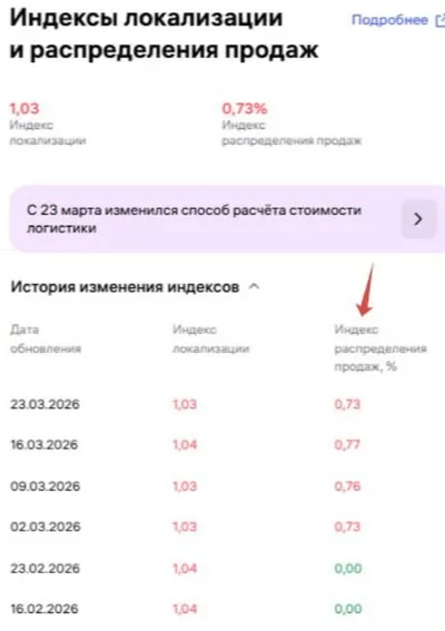 🔔 ВБ начинают выкатывать индекс ИРП (индекс распределения продаж) Пока появилось не по всех кабинетах. Как проверить: ➡️ Поставки ➡️ Тарифы ➡️ Индекс локализации ➡️ История У вас уже появились и