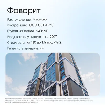 Собрали подборку новых домов в ЖК, которые появились на маркетплейсе недвижимости. Выбирайте квартиру в строящихся или уже сданных домах! Добавили следующие дома: 🔸 Фаворит — 64 квартиры | от 130 до