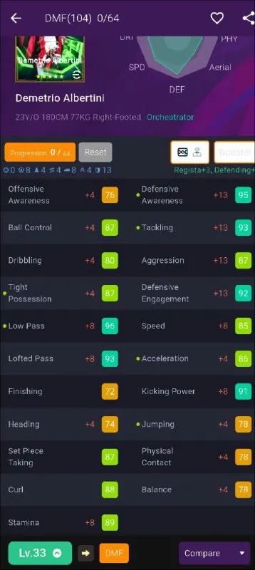 [Официальные статы] ✅ Albertini со стилем Дирижёр • Уровни: 33 • Бустер: Regista +3 ✅ • Особые навыки: Phenomenal Pass ⬆️ - открываем ⬇️ - скип @proefootball | КУПИТЬ МОНЕТЫ 💰
