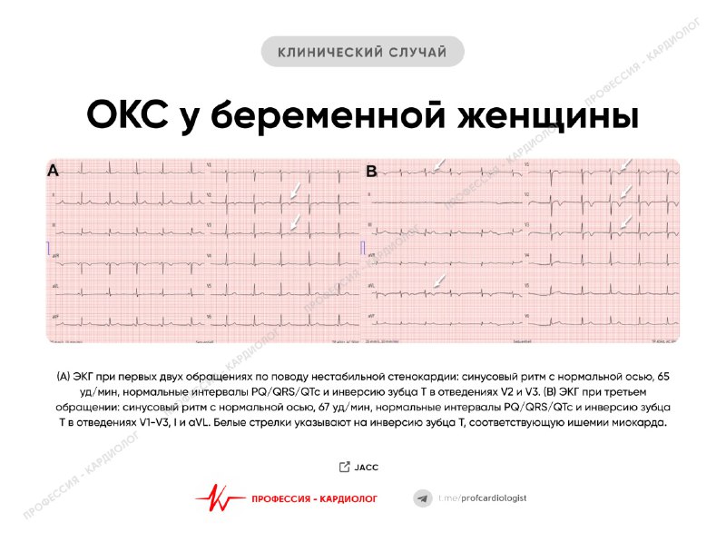 Клинический случай. ОКС во время беременности. Часть 1 Женщина, 40 лет, беременность 11 недель, поступила с типичной болью за грудиной. В анамнезе две госпитализации с аналогичной жалобой. Ранее врач
