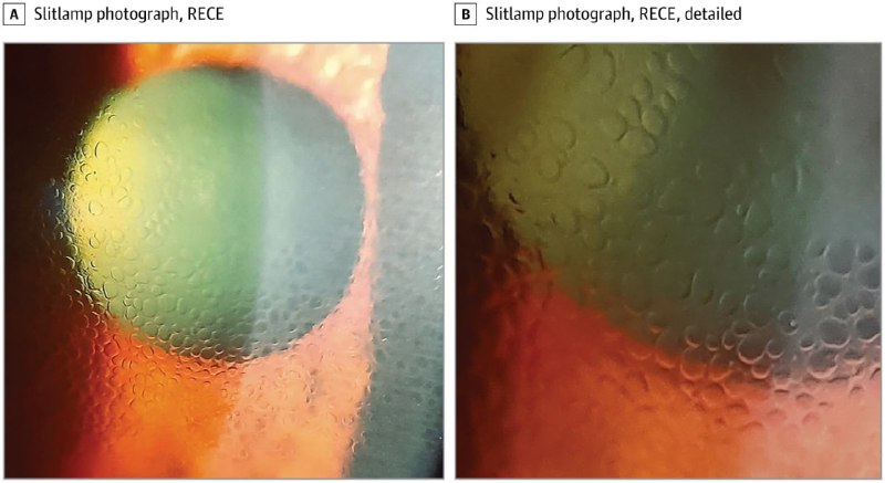 👁 «Сотовый» отёк роговицы на фоне ингибитора Rho-киназы По данным публикации в JAMA Ophthalmology (2025). 57-летний пациент с неоваскулярной глаукомой обратился с внезапным снижением зрения на прав