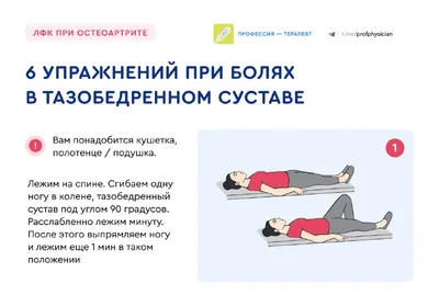 ЛФК при остеоартрите. 6 упражнений при боли в тазобедренном суставе 🌝 Сохраняйте, чтобы не потерять, и делитесь с коллегами – такие материалы реально упрощают работу на приёме.