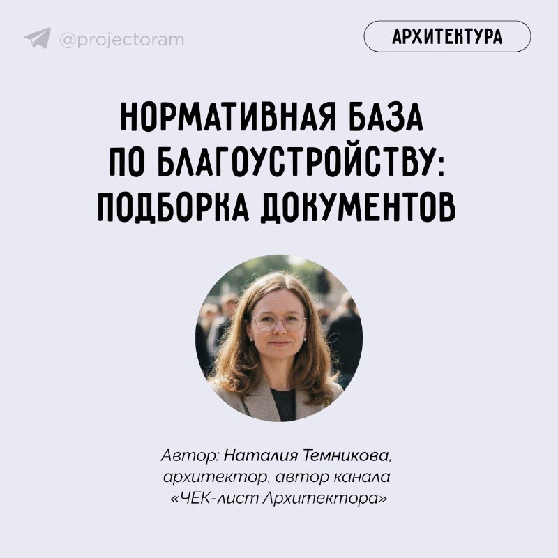 Нормативы по благоустройству, которые должен знать каждый В первой части вместе с Наталией Темниковой, архитектором и автором канала «ЧЕК-лист Архитектора», мы разобрали типы проектов благоустройства