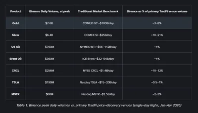 🔥 Через 90 дней после старта торговые объемы по золоту на Binance выросли в 5000 раз — с $1,5 млн до $7,6 млрд в день. Это сопоставимо с показателями крупнейших мировых товарных площадок. За три мес