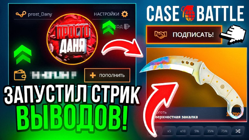 ✔️ ЗАПУСТИЛ СТРИК ВЫВОДОВ НА КЕЙС БАТЛ! 📱 https://youtu.be/tXn8Zq8TzI4 💵Моя рефка aim.market: https://aim.market/p/dany Промо DANY - +3% к сумме сделки
