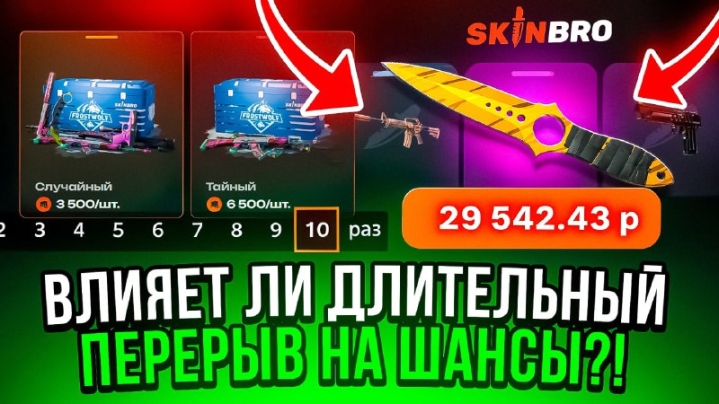 ✔️ ВЛИЯЕТ ЛИ ДЛИТЕЛЬНЫЙ ПЕРЕРЫВ НА ШАНСЫ НА SKINBRO?! 📱 https://youtu.be/ZlcXTfTJax0 ❗️Участник сегодняшнего розыгрыша на нож!(розыгрыш запущу после 2 ролика) 💵Моя рефка💵 SKINBRO - https://clck.