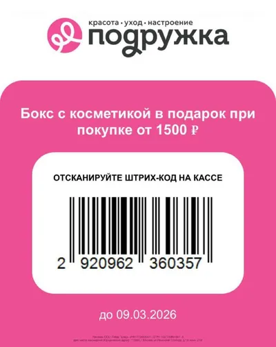Сегодня в Подружке можно получить в подарок бьюти-бокс за онлайн заказ от 1500₽ (только 5 марта). Не знаю, должно ли так быть, но бокс добавляется от суммы ниже (скорее всего, рассчитывается от верхне