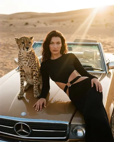 #женский 1. заходим в Бот 2. выбираем nano banana 3. прикрепляем ваше фото где хорошо видно лицо и вставляем промпт: Теплый закат в пустыне, винтажный золотисто-коричневый кабриолет (Mercedes) на пер