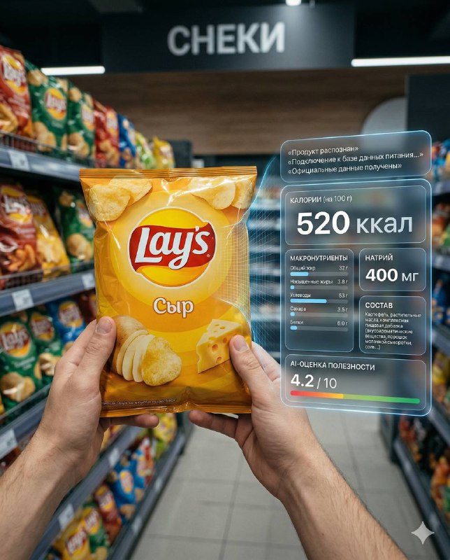 👀 Делаем ИИ-сканнер продуктов — один промт для Nano Banana 2. Кадр из ближайшего будущего: вы берёте товар в супермаркете — и перед глазами появляется интерфейс, который выводит данные о составе и п