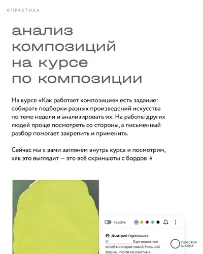 Мы, собственно, что хотели сказать — завтра курс по композиции начинается! Можно участвовать по полной, с обратной связью и всеми делами, а можно на самостоятельном режиме: все задания и борды досту