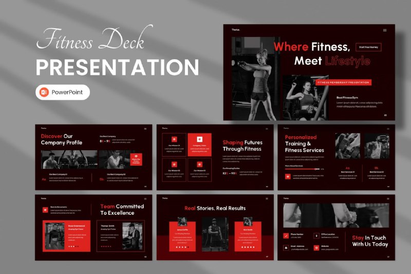 Начните готовиться к лету с этим шаблоном! 💪 Фитнес‑шаблон с тёмным фоном и насыщенными красными акцентами. Идеально подойдёт для того, чтобы рассказать о своём зале, программах в нём, отзывах и пр