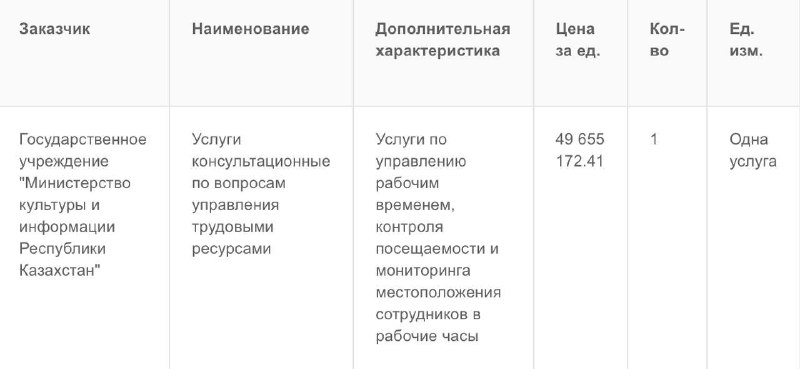 😳Простите, но с какого момента стало так дорого следить за трудовой дисциплиной в Астане? 49,6 млн тенге готовы потратить в Министерстве культуры и информации на услуги с “Модулем контроля рабочег