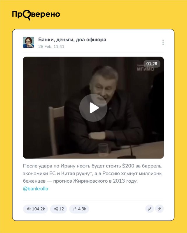 🧠 Жириновский опять всё предсказал? Блогеры распространяют несбывшийся прогноз политика под видом актуального В Telegram стало вирусным видео с прогнозом, который Владимир Жириновский якобы дал ещё
