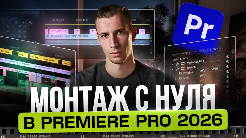 🎞 Как монтировать видео в Premiere Pro Это самый полный гайд по новому Premiere Pro 2026 если хочешь начать учиться с нуля. Начнем с базовых понятий и инструментов, а к концу урока смонтируем видео