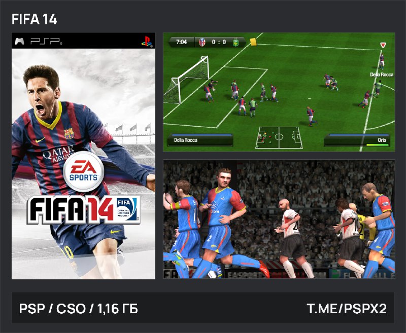🟩 FIFA 14 FIFA 14 для PSP — это спортивный симулятор футбола, разработанный и изданный компанией Electronic Arts. Выпущенная в 2013 году, эта игра является частью популярной серии FIFA и предлагает