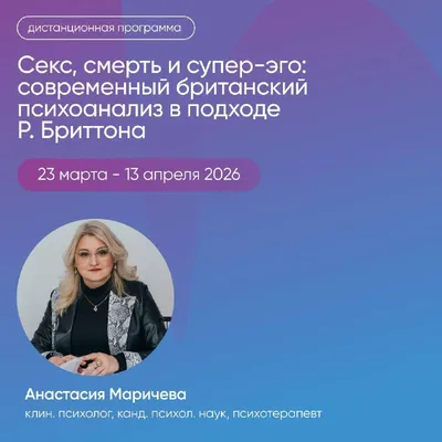 23 марта стартует курс «Секс, смерть и Супер-Эго: современный британский психоанализ в подходе Р. Бриттона» Три слова, за которыми — фундамент человеческой психики и ключи к пониманию самых сложных т