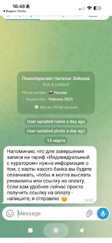 Если вы что-то спрашивали про курс «Страх. Тревога. Беспокойство» в комментариях, с высокой долей вероятности вам напишут и сделают предложение от моего лица. Это, конечно же, мошенники. Напоминаю, м