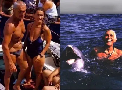 📌Знаменитый итальянский дайвер Энцо Майорка нырял в море близ Сиракуз со своей дочерью Россаной, которая была на лодке. Погружаясь, он почувствовал, что что-то слегка ударило его по спине. О