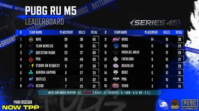 *️⃣ Итоги турнира PUBG RU M5 SERIES 45 *️⃣ 1️⃣ HiVE ➖( Line-up: Mogore | r0xxx- | shengenxx | sunfloweeeee ) 2️⃣ Team Nemesis ➖( Line-up: Mellman | highegoplayer237 | SoseD- | Staed- ) 3️⃣ Quest