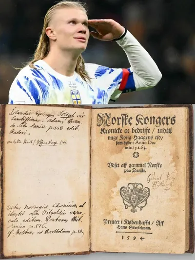 🇳🇴📖 Эрлинг Холанд и его отец тайно купили на аукционе самую дорогую книгу Норвегии – и подарили ее родной коммуне Тиме в губернии Ругаланн За уникальное издание 1594 года «Саги о королях», состави