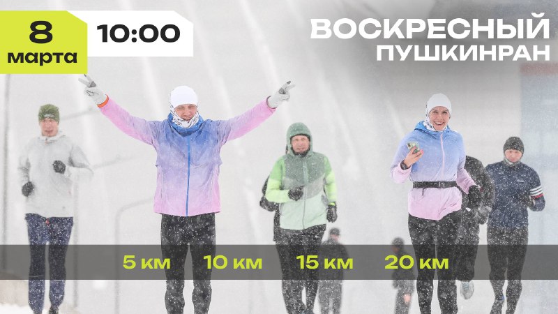 Воскресная пробежка ПушкинРан | 8 марта 🌷 📍 Стартуем в 10:00 Откуда: Южная дорога, 25Б (Крестовский остров) 📱 yandex.ru/maps/-/CCU6vUEoGA Дистанции: от 5 до 20 км Ольга Маркова проведёт зажигат