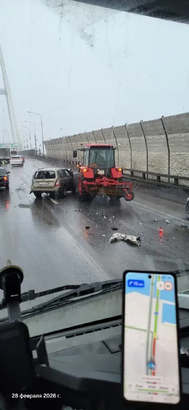 🔴 ДТП на въезде на мост с внутреннего кольца КАД Трактор не поделил дорогу с Subaru, столкновение затруднило движение. Подробности о пострадавших уточняются. Подписаться на Пушкинский