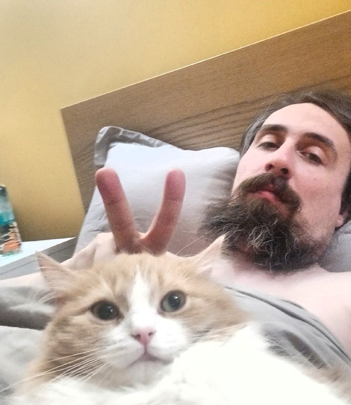 Я собирался продолжить заваливать вас опросами про еду, но чуть только сел в поезд, телеграм охнул и упал. Поэтому вот вам селфи Слона со мной, а я поехал дальше в Питер без контакта с внешним миром.