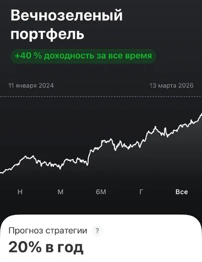 Наконец моя супер консервативная стратегия с разными активами «Вечнозеленый портфель» преодолела 40% доходности с 2024 года Я планировал годовую доходность в 20% и пока чуть отстаю от графика, на се