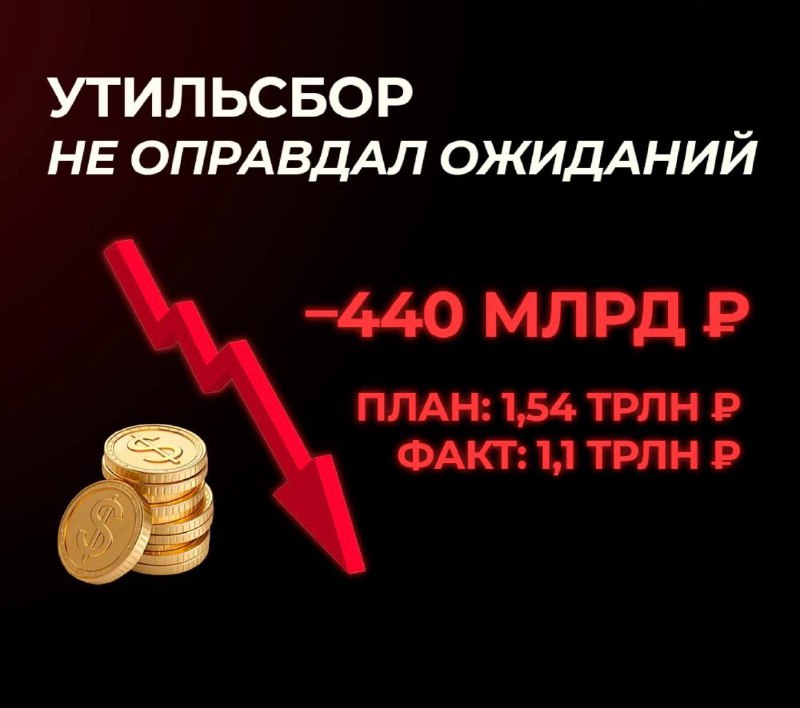 Утильсбор должен был принести 1,54 трлн ₽. Фактически - 1,1 трлн ₽. Минус 440 млрд ₽ ! ⚠️Высокие ставки снизили спрос, импорт сократился, сборов стало меньше. ‼️ Но слишком жёсткое давление невыгодн