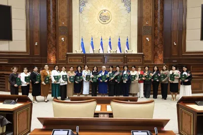 Группа женщин, осуществляющих деятельность в системе высшего образования, награждена Почетной грамотой Председателя Сената Олий Мажлиса В связи с 8 марта - Международным женским днем группа женщин, д