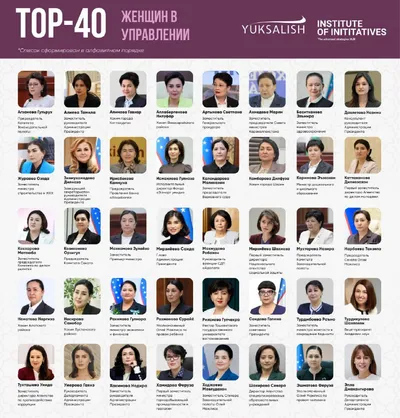 В Узбекистане обновлен рейтинг ТОП-40 женщин в управлении Движение «Юксалиш» совместно с экспертами Института социальных и экономических инициатив обновило ежегодный рейтинг ТОП-40 женщин, работающих
