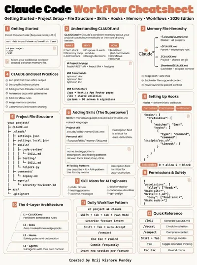 ➡️ Чит-лист по Claude Code (Workflow 2026) Claude Code — это не просто CLI, а полноценная среда для автономного кодинга. Чтобы он не «галлюцинировал», нужно правильно выстроить иерархию памяти: CLAU