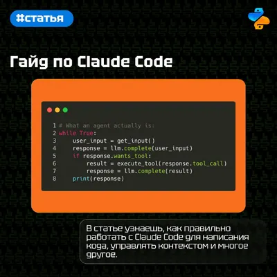 🤖 Гайд по Claude Code Делимся полезным гайдом для тех, кто еще не освоил Claude Code. Ты узнаешь, как правильно работать с ним для написания кода, управлять контекстом и многое другое. В результате