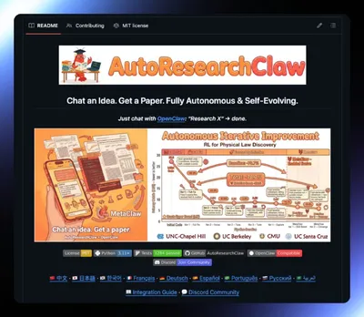 🤖 Chat an idea - get a full research paper. Появился интересный open-source проект - AutoResearchClaw. Это система автономного AI-ресёрча: вы просто пишете идею исследования, а агент запускает полн