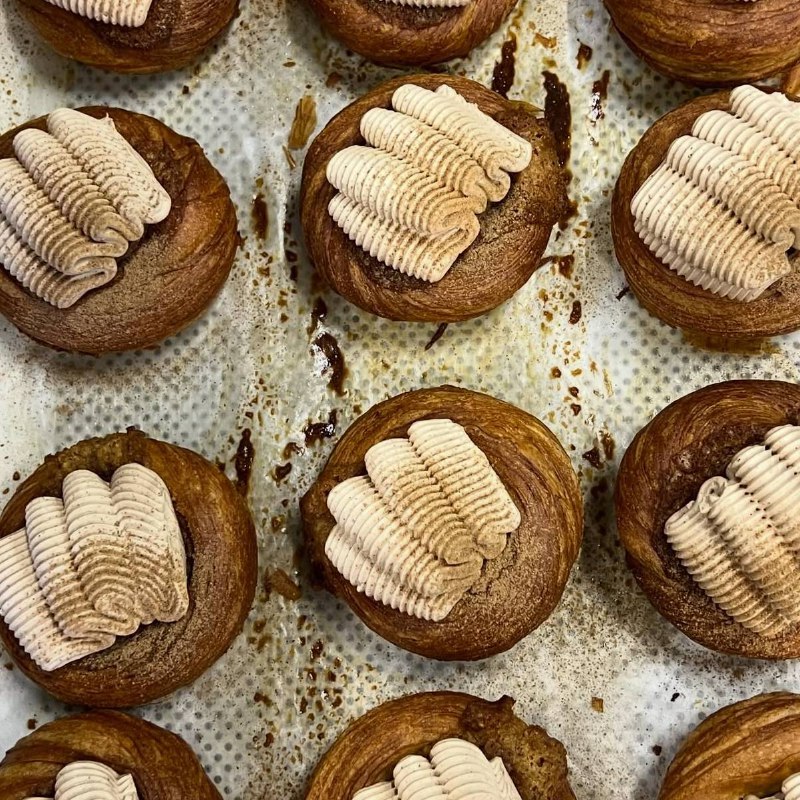 поднимаем настроение новой пряной булкой из DNA* — на кухне придумался даниш в основе которого слоеное тесто и франжипан из грецкого ореха, а сверху крем из шоколада со специями масала 📍DNA, самокат