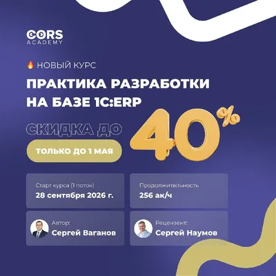 🆕 Курс «Практика разработки на базе 1С:ERP» – новинка в CORS Academy Курс для разработчиков 1С с базовым опытом программирования в 1С:Предприятие. За 14 недель разберёте ключевые подсистемы 1С:ERP