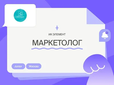 Junior маркетолог Компания: ИК ЭЛЕМЕНТ З/П до 90 000 ₽ Формат работы: Москва Источник вакансии: HH ДЛЯ НАС ВАЖНО: - Минимальный опыт работы в маркетинге от 6 месяцев (стажировка, фриланс, волонтёрс