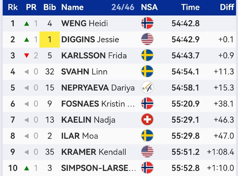Хайди Венг выиграла скиатлон 20 км на этапе Кубка мира в Фалуне. 🥇Хайди Венг 🇳🇴 🥈Джесси Диггинс 🇺🇸 🥉Фрида Карлссон 🇸🇪