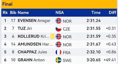 Ансгар Эвенсен стал победителем спринта классическим стилем на этапе кубка мира в Драммене. 🥇Ансгар Эвенсен 🇳🇴 🥈Иржи Туз 🇨🇿 🥉Кристиан Коллеруд 🇳🇴 Йоханнес Клэбо упал в полуфинале и не смог