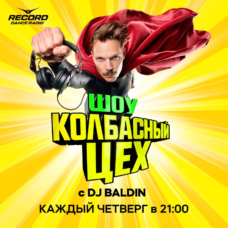 🧡 Легендарное радиошоу Колбасный Цех возвращается в эфир Рекорда! Та самая рейв энергия, любимые треки и свежие бенгеры! Ведущий шоу — наш резидент DJ BALDIN. Подключайтесь сегодня в 21:00, а далее
