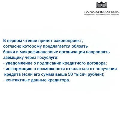 Государственная Дума в первом чтении приняла законопроект, призванный защитить россиян от мошеннических кредитов 📄Документ вводит обязательное информирование граждан через портал «Госуслуги» о любых