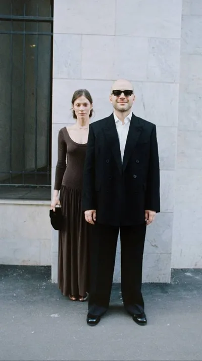 Саджа Килани на показе второй коллекции Луиз Троттер для Bottega Veneta. За стиль отвечал я.