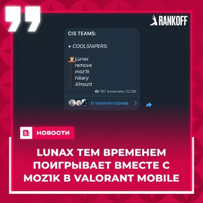 ❓ 🤩LUNAX ТАКЖЕ ПОКИДАЕТ VIRTUS.PRО Да, но не надолго, просто зашел вместе с 🇷🇺moz1k сыграть 😔турнир в Valorant Mobile в составе команды COOLSNIPERS