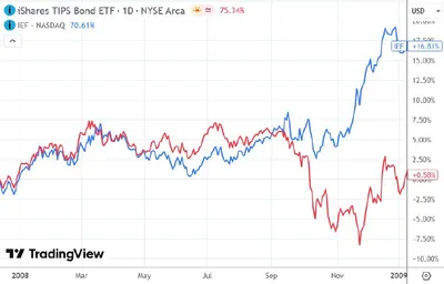 TIPS vs обычные US Treasuries, часть 2 А вот и ответ на вчерашний вопрос «чем TIPS уступают обычным US Treasuries в портфеле?». Там была аргументация «номинальные US Treasuries обеспечивают работу в